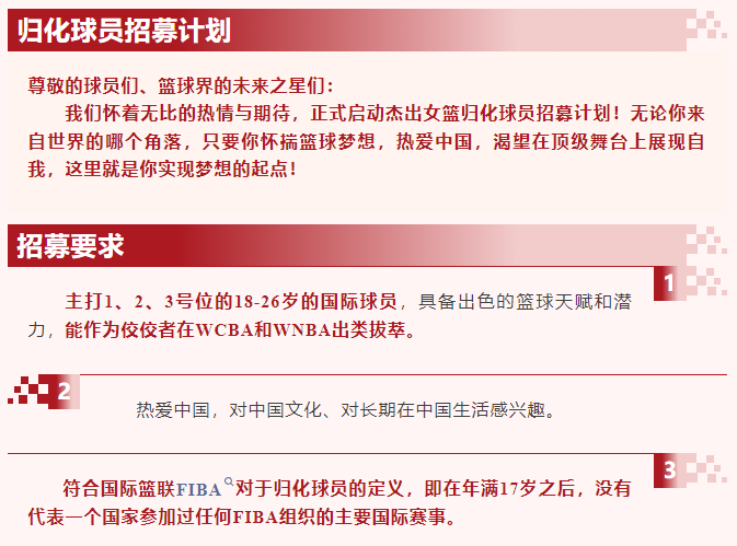 武汉盛帆女篮俱乐部发布归化球员招募 图/武汉盛帆俱乐部