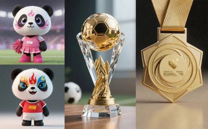 “川超”祯祥物、奖杯、奖牌图据成都发布