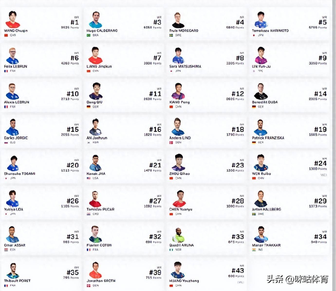 3月4日,2026年WTT重庆冠军赛将于3月10日至15日举行,据WTT官网涌现,林诗栋退出了报名名单,陈垣宇将递补出战。加上温瑞博、黄友政、石洵瑶也曾通过提名和外卡参加体育集锦,国乒共14东说念主参与本届重庆冠军赛!