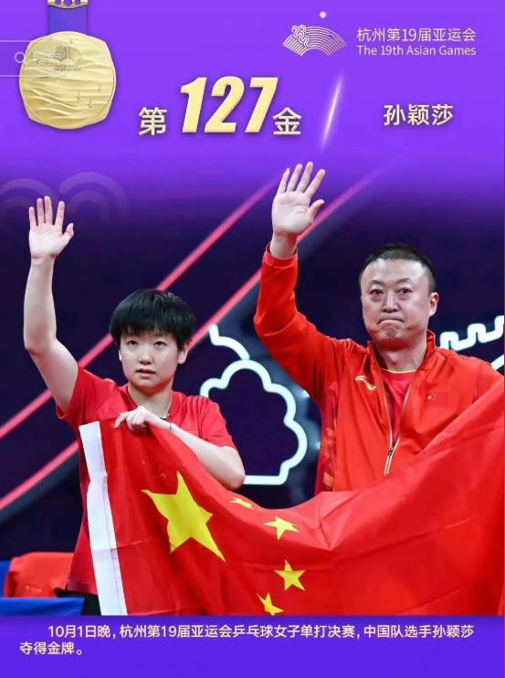2023年杭州亚运会,孙颖莎总决赛里慑服早田,稳住了家门口升中国国旗