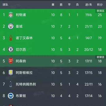4、争冠集团——利物浦、曼城、阿森纳、切尔西,其中阿森纳还是掉队,很难追逐上来,球队的气质不比上个赛季,反而是切尔西越战越勇,干预前三问题不大;