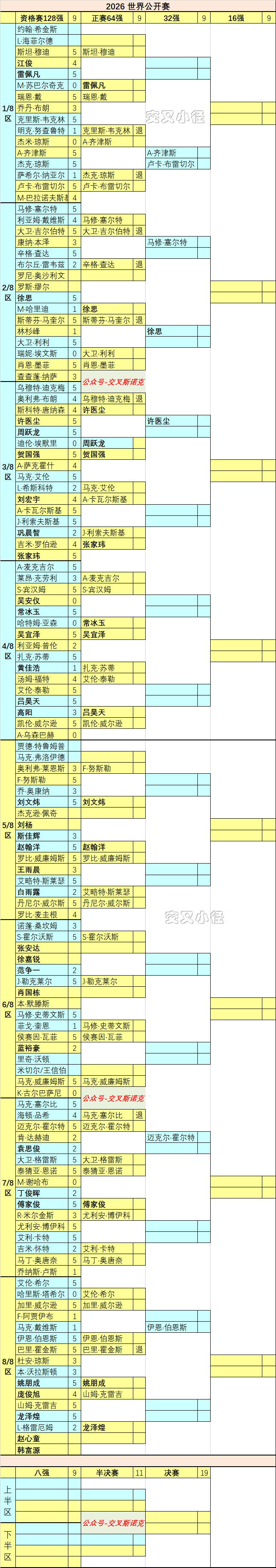临开赛前,又有球员退赛,替补尼尔·罗伯逊的业余球员乌穆特·迪克梅,打进正赛后退赛,敌手许医尘自动晋级32强。至此,本届宇宙公开赛,退赛的球员总额高达10东谈主。